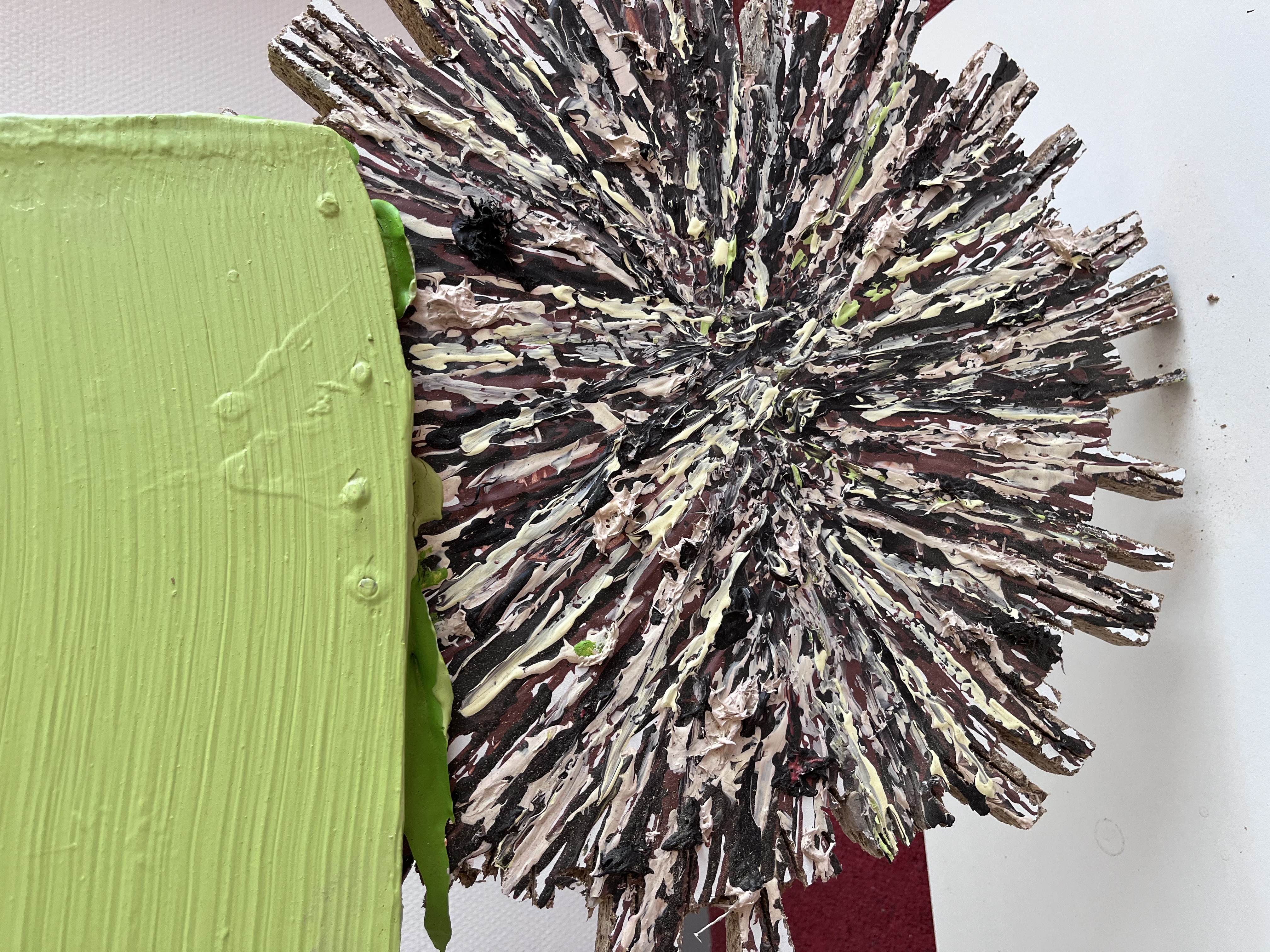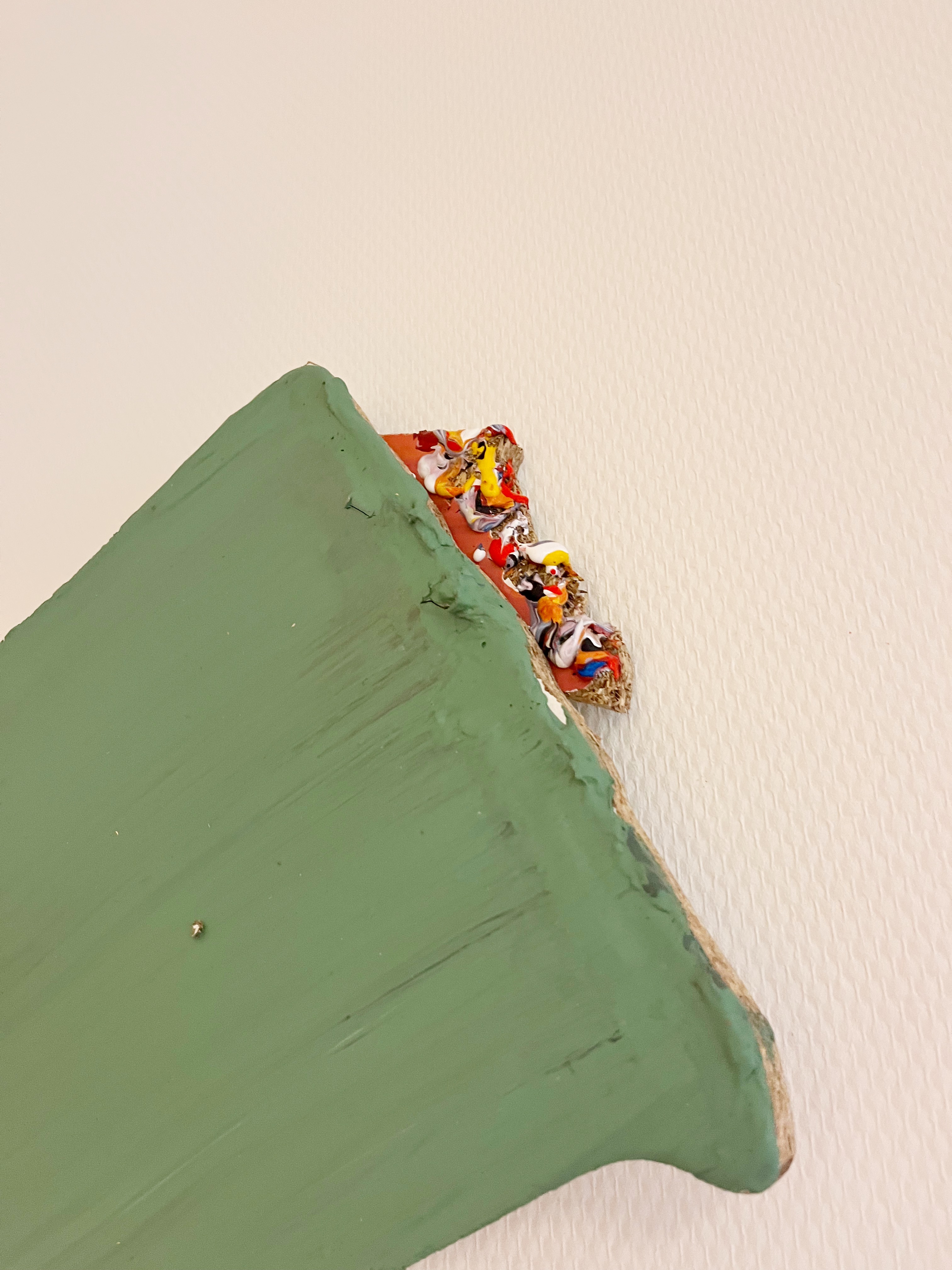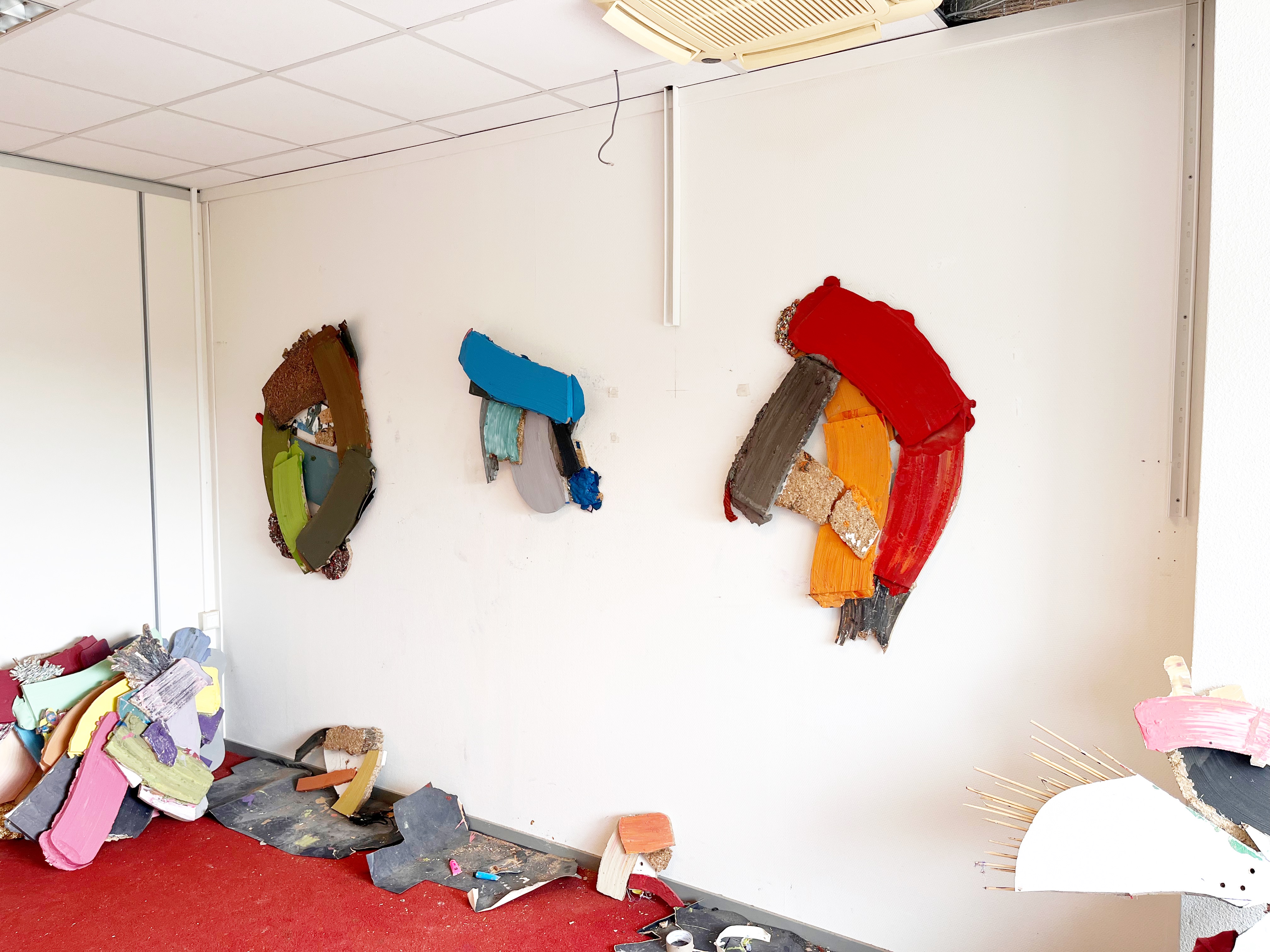 < img data-description="Joie de vivre, approximately 91cm x 45cm, acrylic,mandarin nets and pencil shavings on melamine board, 2024" data-title="<strong></strong>" src="assets/paintings/joie de vivre.JPG" />< img data-description="Genadeklapper, approximately 167cm x 91cm, acrylic,,aluminum,wool and hair of a paintbrush on melamine board, 2024" data-title="<strong></strong>" src="assets/paintings/genadeklapper.JPG" />< img data-description="Le Java, approximately 119cm x 161cm, acrylic,pieces of wood,sawdust,hair from a paintbrush,aluminum and plastic on melamine board, 2024" data-title="<strong></strong>" src="assets/paintings/le java .JPG" />