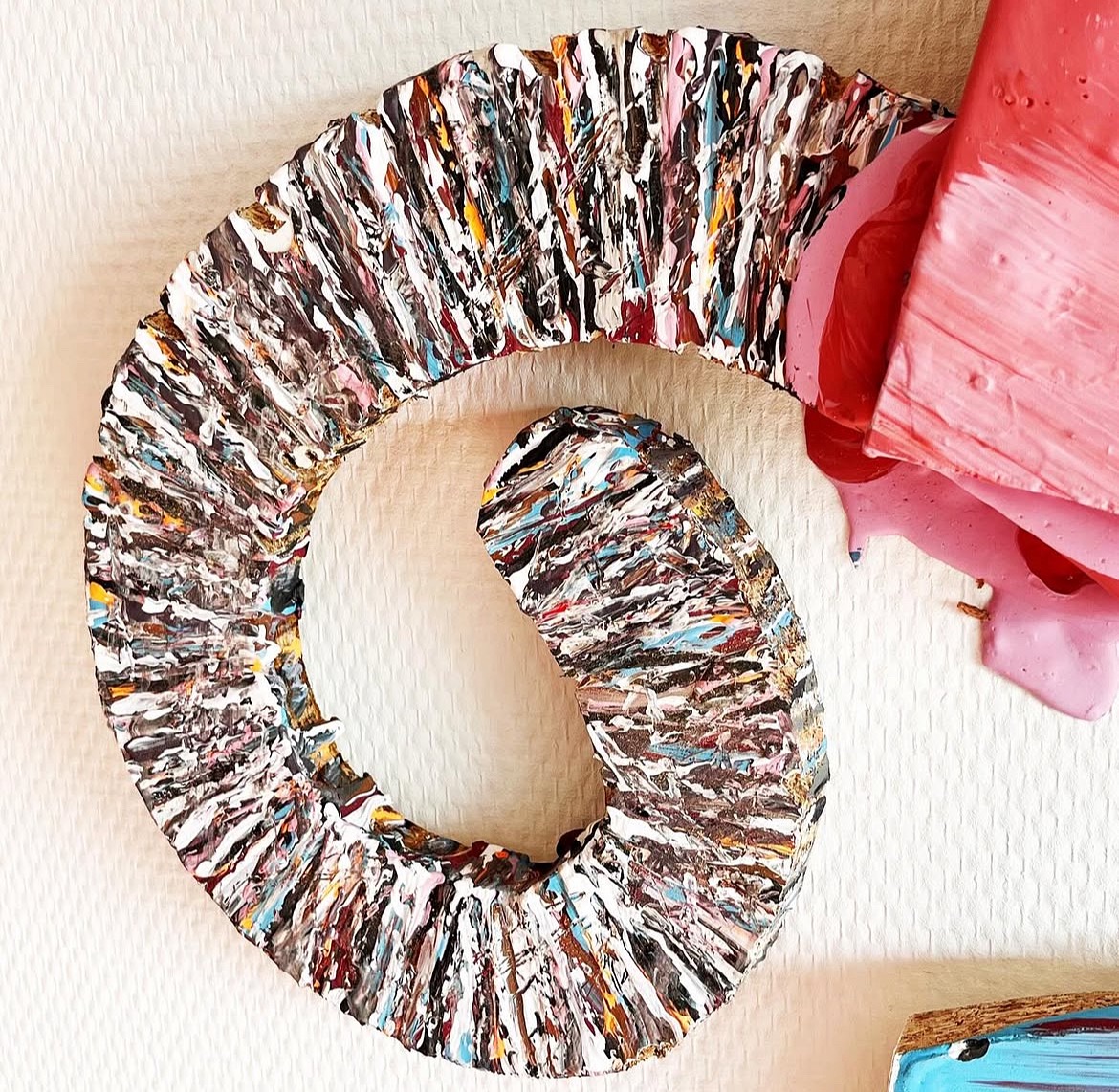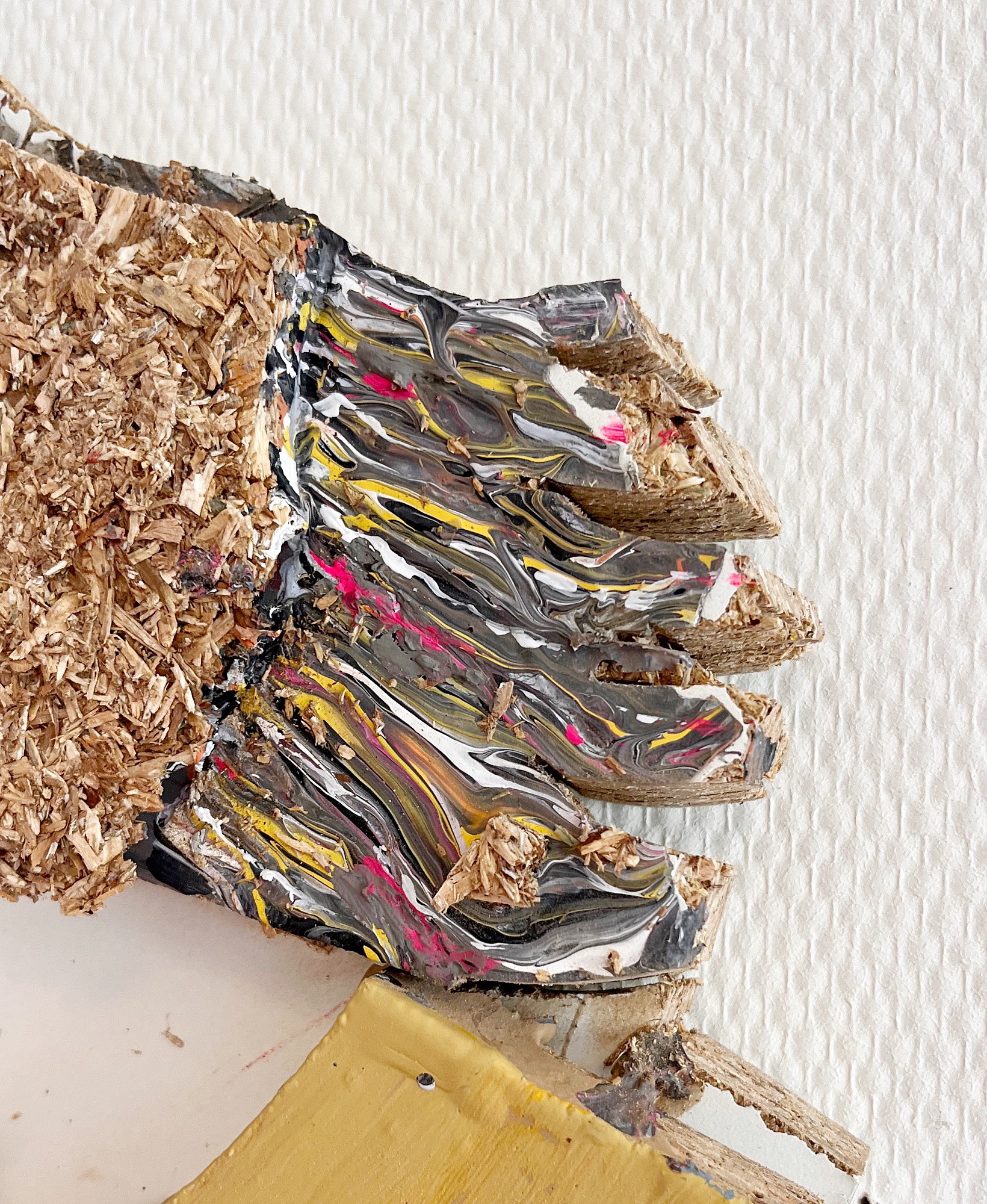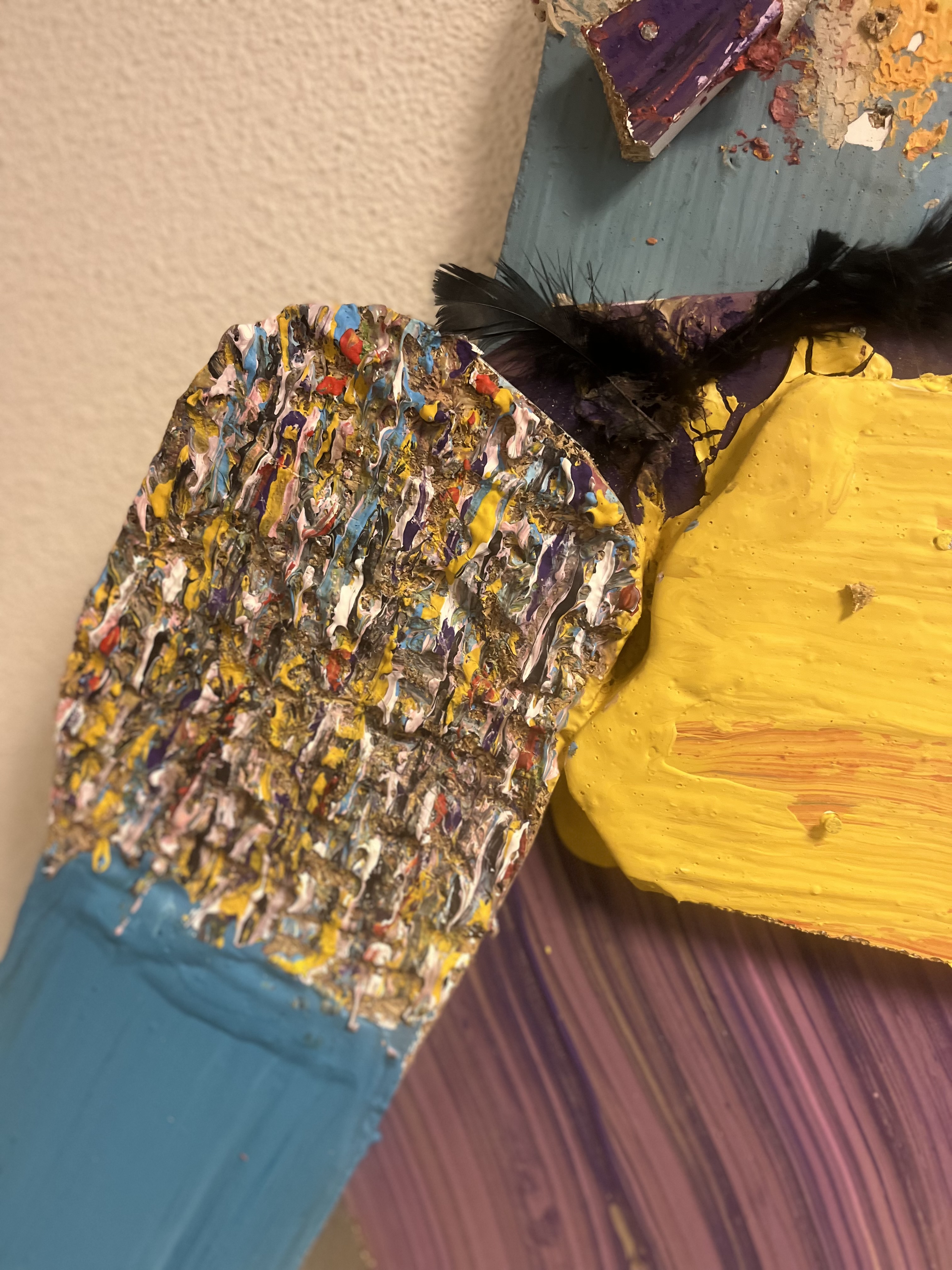 < img data-description="Joie de vivre, approximately 91cm x 45cm, acrylic,mandarin nets and pencil shavings on melamine board, 2024" data-title="<strong></strong>" src="assets/paintings/joie de vivre.JPG" />< img data-description="Genadeklapper, approximately 167cm x 91cm, acrylic,,aluminum,wool and hair of a paintbrush on melamine board, 2024" data-title="<strong></strong>" src="assets/paintings/genadeklapper.JPG" />< img data-description="Le Java, approximately 119cm x 161cm, acrylic,pieces of wood,sawdust,hair from a paintbrush,aluminum and plastic on melamine board, 2024" data-title="<strong></strong>" src="assets/paintings/le java .JPG" />